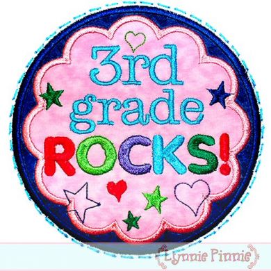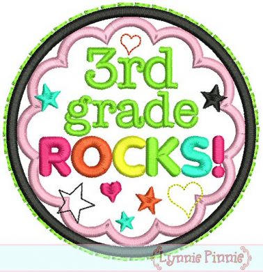 3rd Grade Rocks Applique Circle Scallop 4x4 5x7 6x10