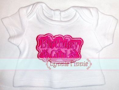 This fun Birthday Girl design comes in 5 sizes, including a 3 in size that is PERFECT for doll-sized shirts.  (We get our doll-sized shirts from ARB Blanks)
