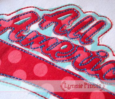 - 3.87x2.19 inches; 4,693 stitches -- applique lettering