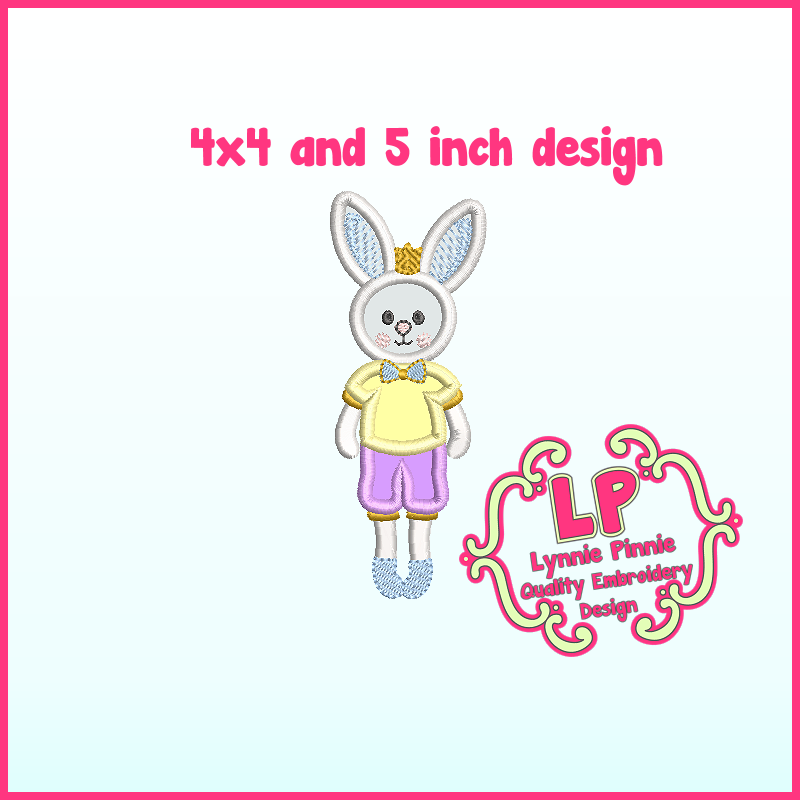 Applique Bunny Prince Machine Embroidery Design File 4x4 5x7 6x10