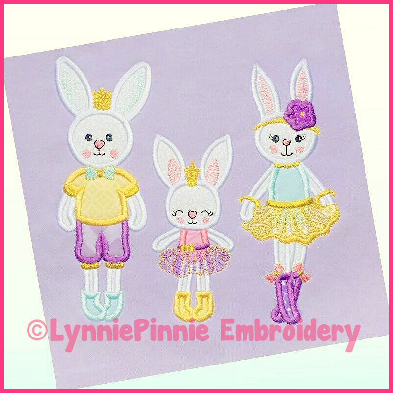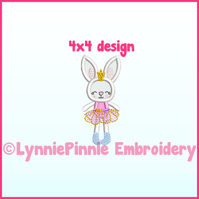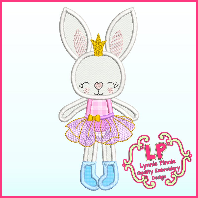 Applique Bunny Princess 1 Machine Embroidery Design File 4x4 5x7 6x10