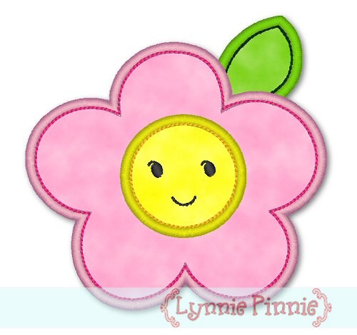 Applique for the 4x4 and 5x7 hoop. The face stitches last so if you prefer a plain flower, simply skip the last color.