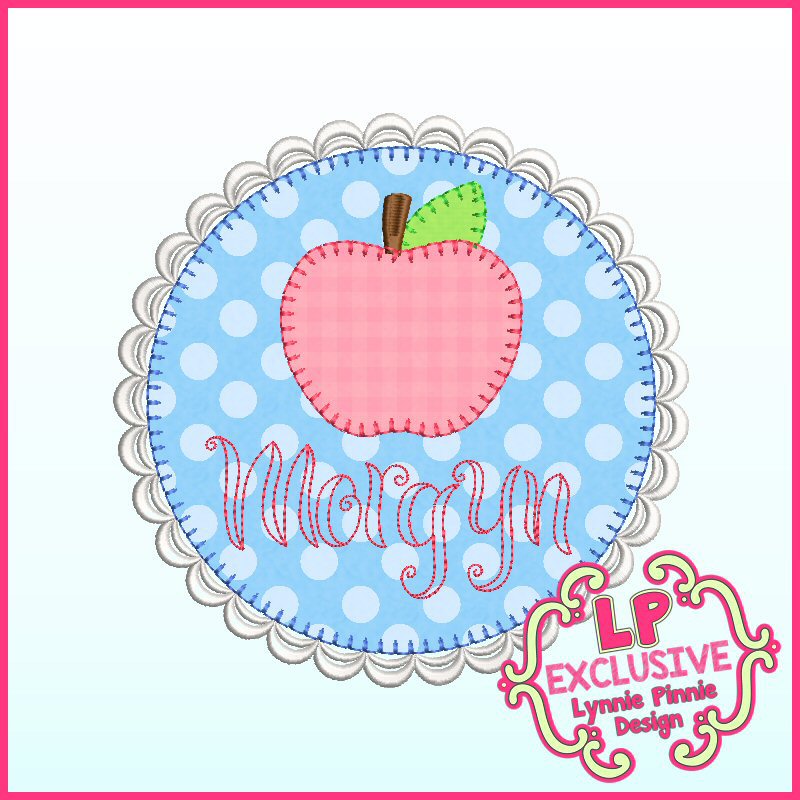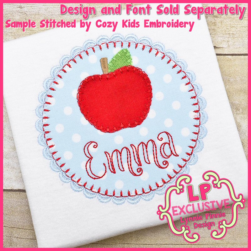 Back to School Fancy Apple Frame Circle Bold Blanket Stitch Applique Machine Embroidery Design File 4x4 5x7 6x10