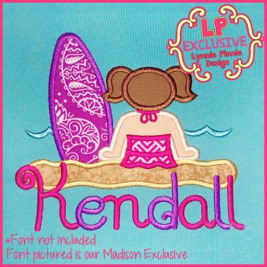 keywords: embroidery design beach summer ocean waves girl cutie swim swimsuit bathing sand surf surfer surfboard