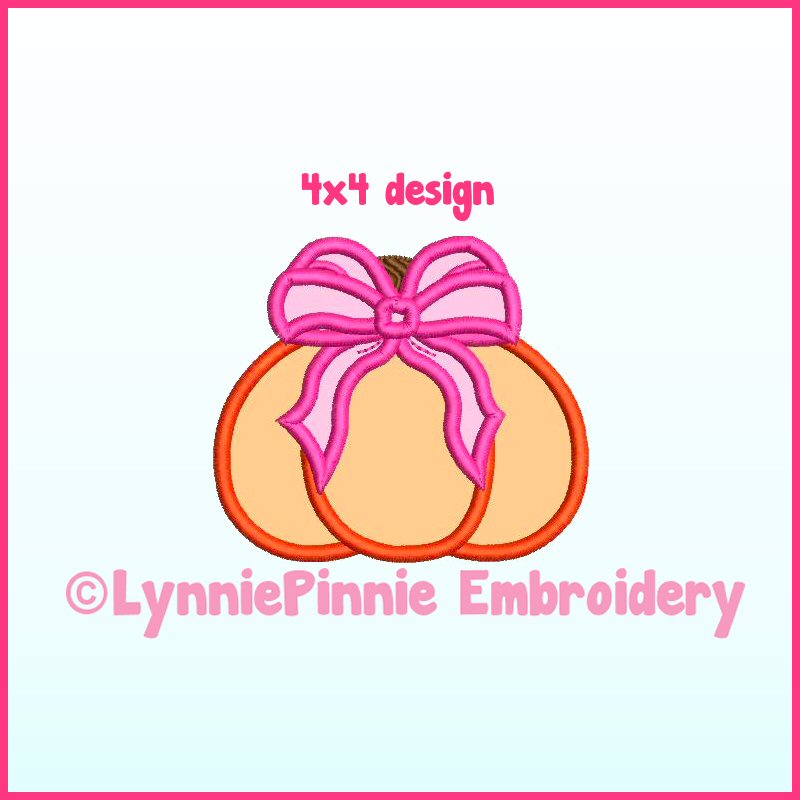 Keywords:  pumpkin pumpkins bow pink girl girly fall halloween thanksgiving pattern embroidery applique fabric design designs pes brother 4x4 janome pe770 pe-770 pe500 pe800 pe780 persona