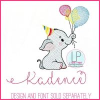 This adorable birthday elephant with balloons can be stitched with or without mylar.