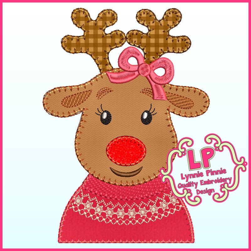 Bold Blanket Stitch Girl Reindeer in Winter Sweater Applique Machine Embroidery Design File 4x4 5x7 6x10