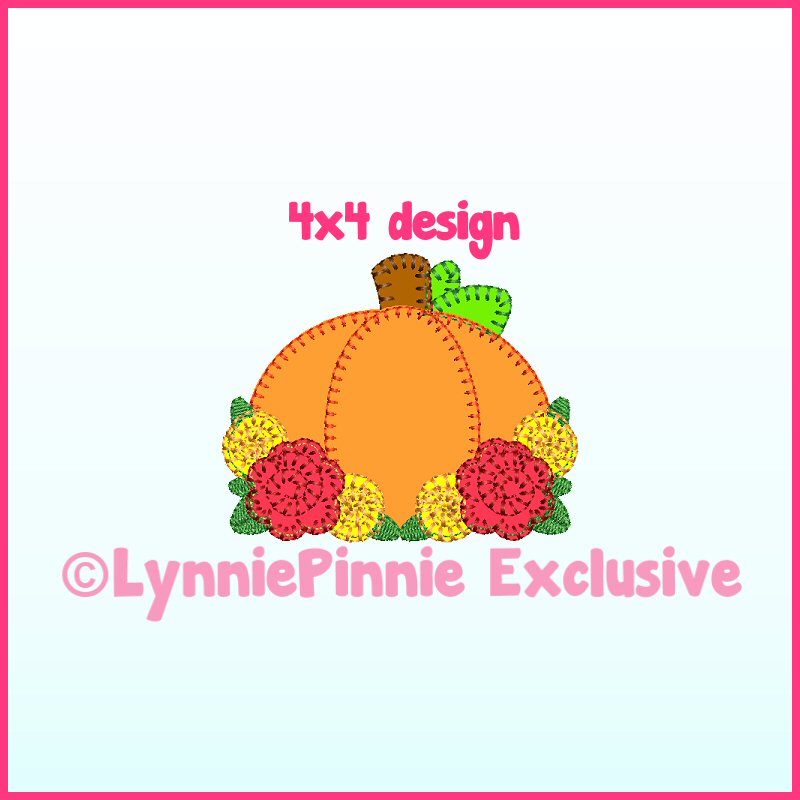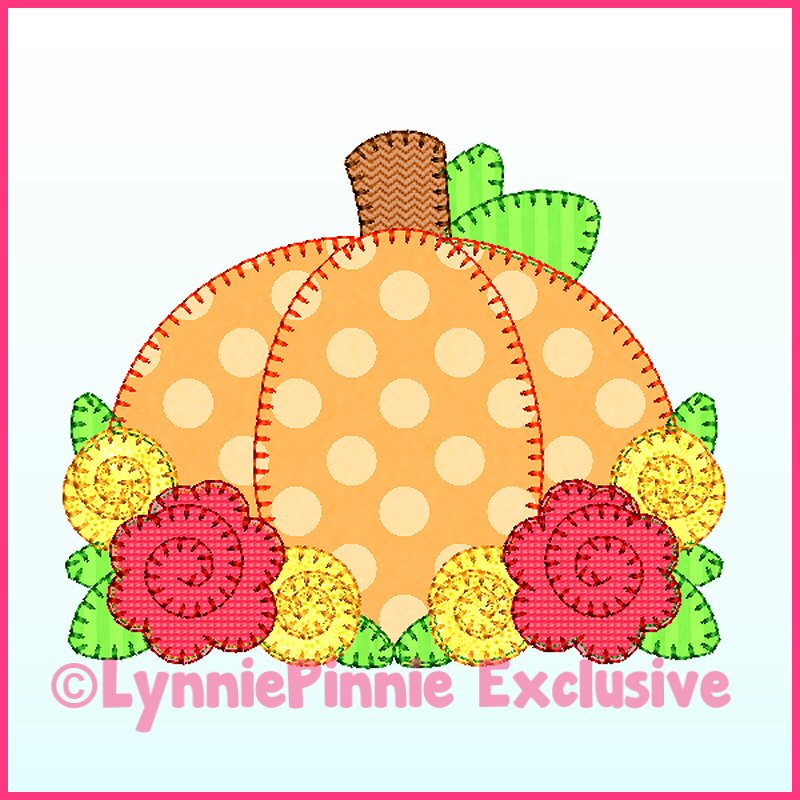 Bold Blanket Stitch Pumpkin with Roses Applique Machine Embroidery Design File 4x4 5x7 6x10 7x11