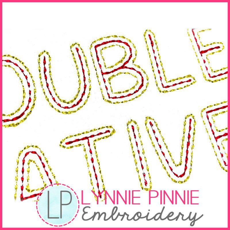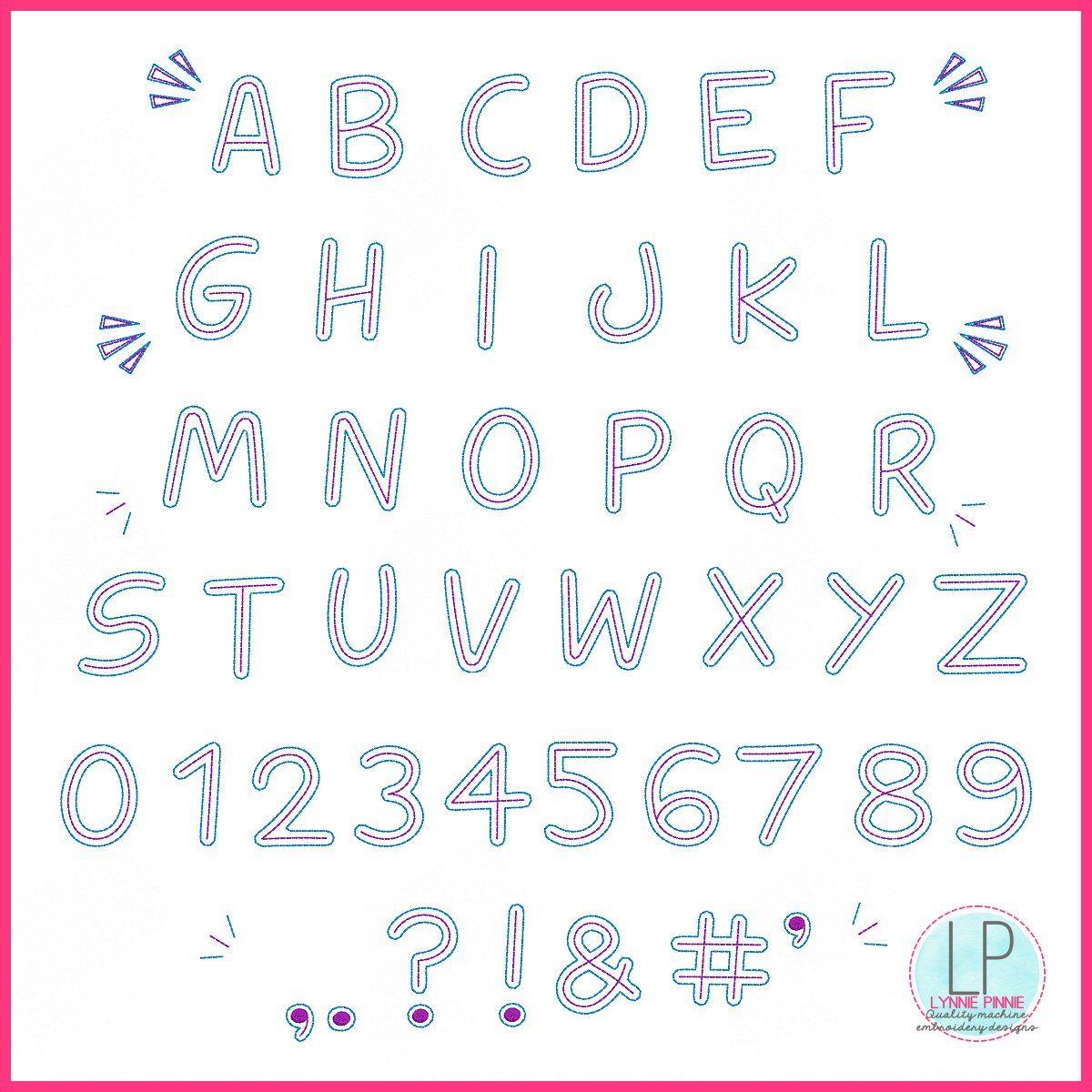 DST, EXP, HUS, JEF, PES, VIP, VP3 and XXX formats include uppercase letters, numbers, and punctuation in 6 sizes: