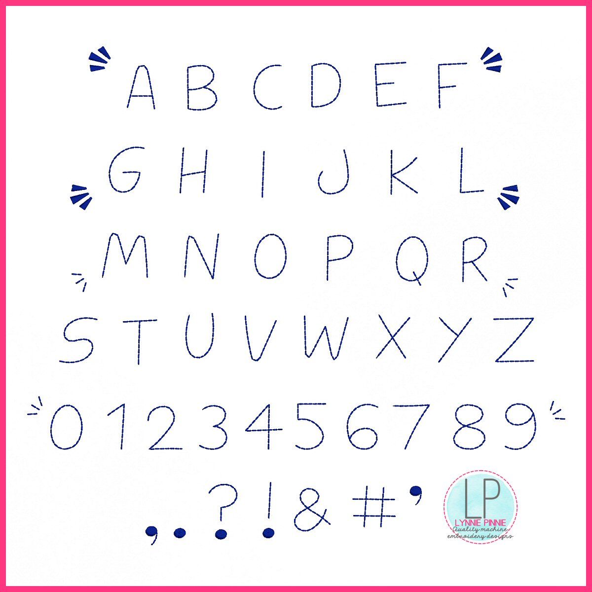 DST, EXP, HUS, JEF, PES, VIP, VP3 and XXX formats include uppercase letters, numbers and punctuation in 6 sizes: