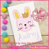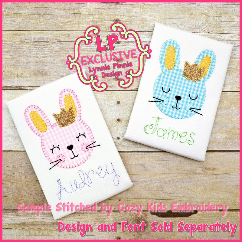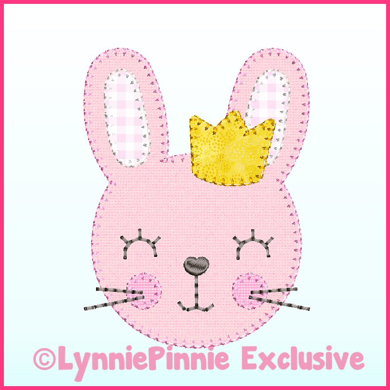 Release Date: March 2019Spring 1 2019 Bundle© Lynnie Pinnie Embroiderykeywords: easter bunny rabbit crown gold girl face head applique fabric embroidery design designs 4x4 pes brother janome pe770 pe-770 pe500