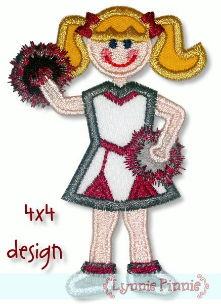 Use your favorite team's colors to show your team spirit. The possibilities are endless with this cute cheerleader!