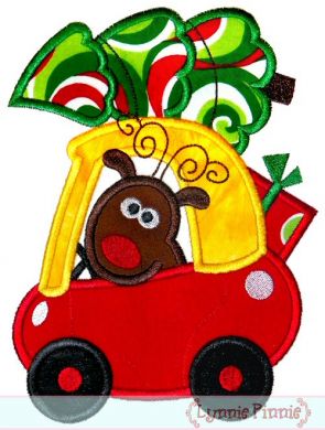 Christmas Reindeer in Coupe Car Applique 4x4 5x7 6x10