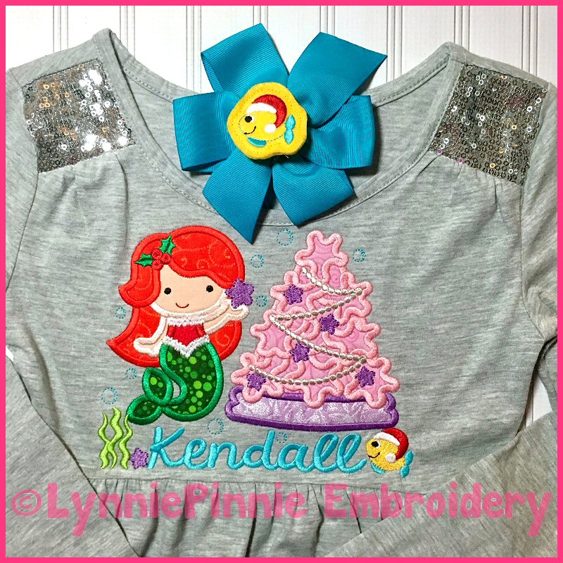 Christmas Tree Mermaid Cutie Applique Design 4x4 5x7 6x10