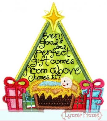 3 sizes (for a 4x4 option please see Christmas Tree with Baby Jesus Applique 4x4 5x7 6x10 7x11)