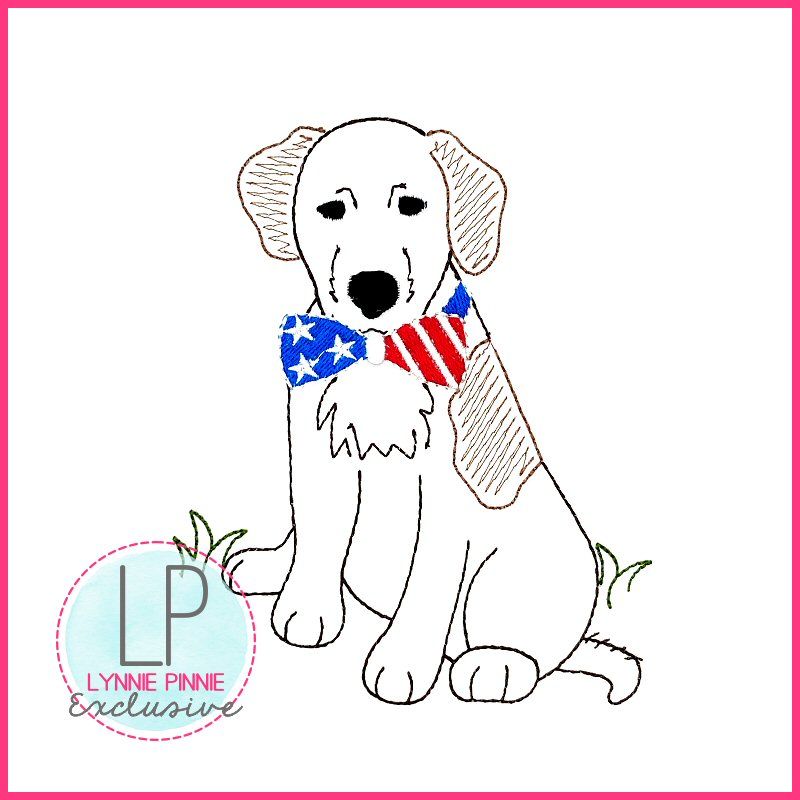 keywords:  dog lab labrador boy july 4 4th of july independence day memorial day united states flag embroidery sketch scribble fill stitch light colorwork triple bean design designs 4x4 pes brother janome pe770 pe-770 pe500 red work redwork letter mail flower flowers grass sitting