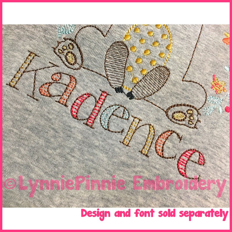 This quick stitching font is an easy and adorable stitch out! BX files for Embrilliance software included.