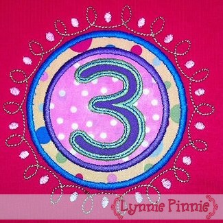 These adorable applique numbers are perfect for birthdays!  Change the fabric and thread colors for endless possibilities.  Includes numbers 1-12 and a blank frame, all in 3 sizes: