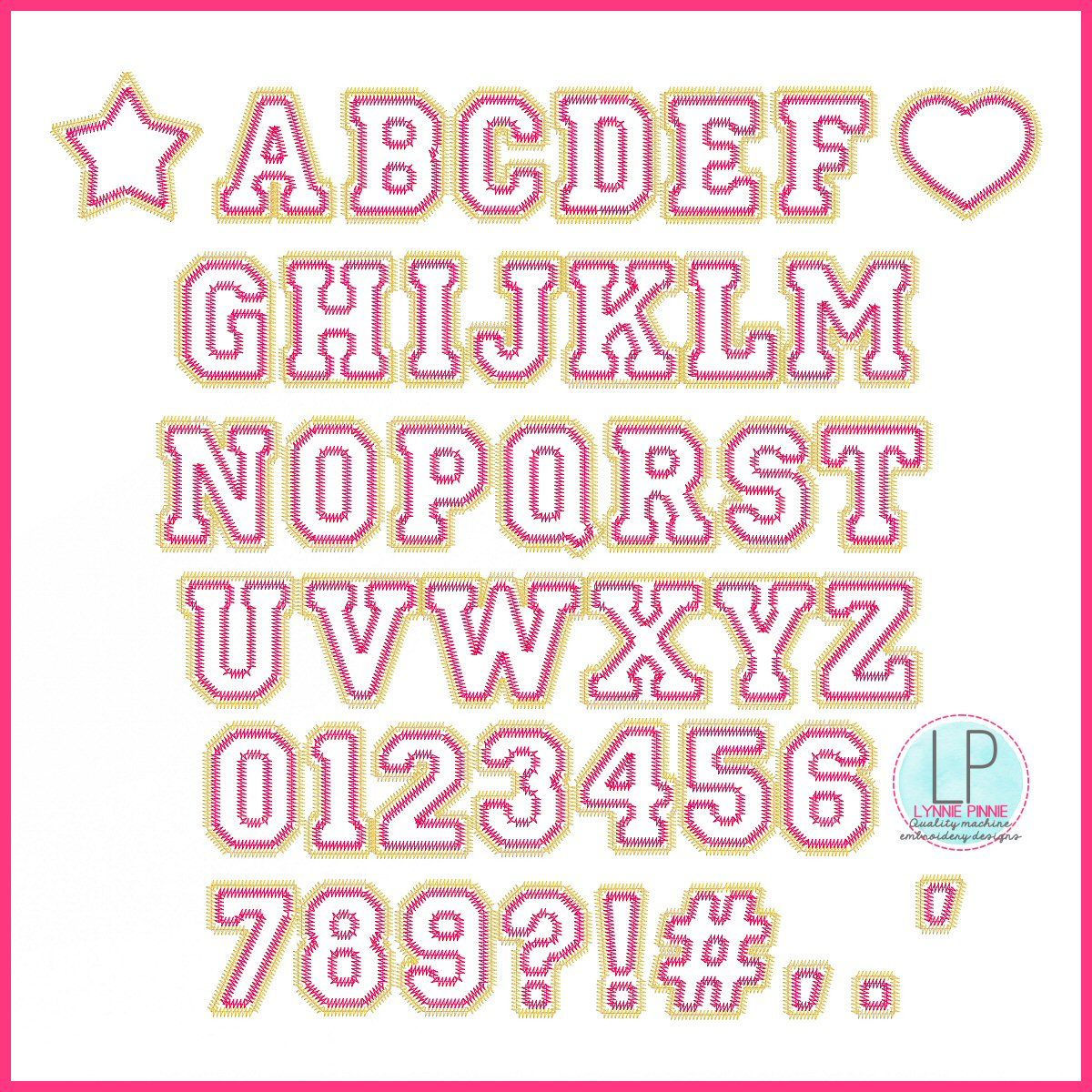 Double Layered Zig Zag Applique Font DIGITAL Embroidery Machine File -- 5 sizes + Native BX Embroidery Font Scalable