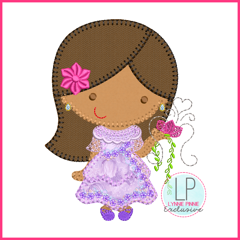Flower Princess Blanket Stitch Applique Machine Embroidery Design File 4 Sizes 5x7 6x10