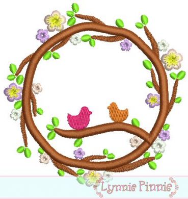 Flowers and Birds Applique Monogram Name Frame 4x4 5x7 6x10 7x11