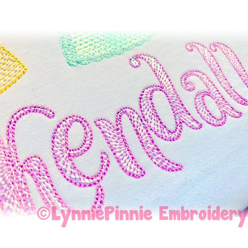 A cute and quick stitching font perfect to use with our Mylar designs!