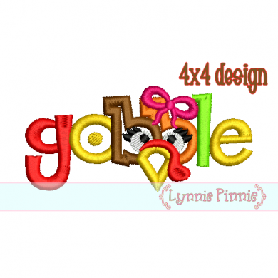 Gobble Girl Turkey Face Applique 4x4 5x7 6x10