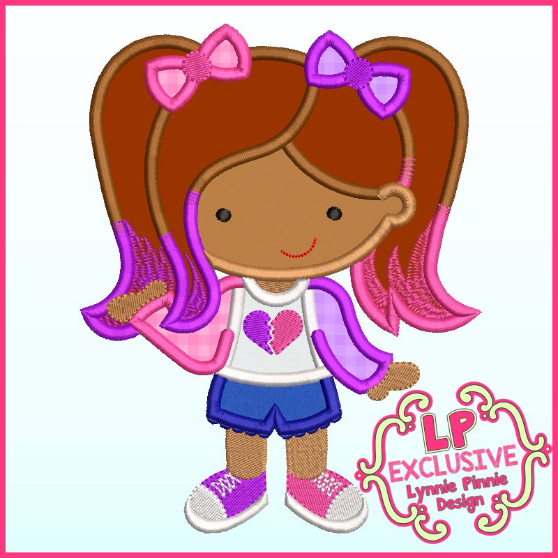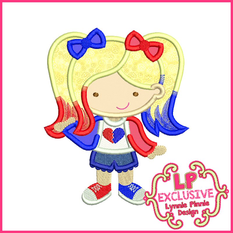 Keywords: pigtails colored hair princess superhero super hero cutie heart breaker harley pattern embroidery applique fabric design designs mis matched miss mismatched  girl quinn 4x4 pes brother janome pe770 pe-770 pe500 pe800