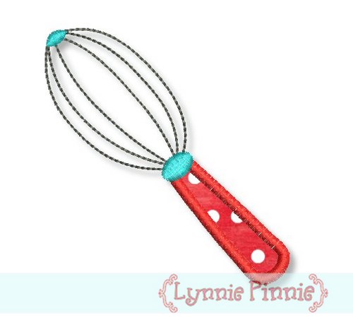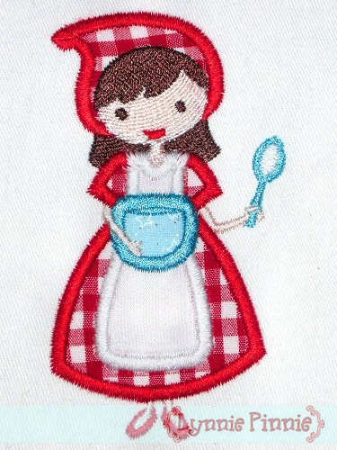 Kitchen girl, stand mixer, mixing bowl, oven mitt, sauce pan, hat, apron and three utensils