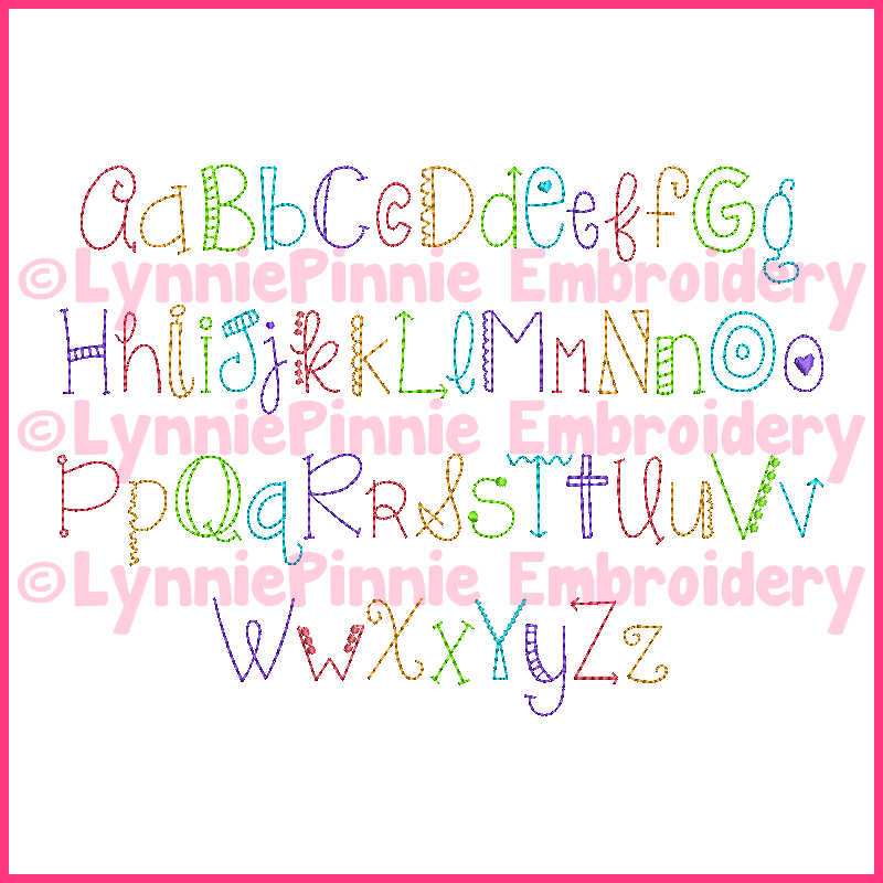 This quick stitching font is an easy and adorable stitch out! BX files for Embrilliance software included.