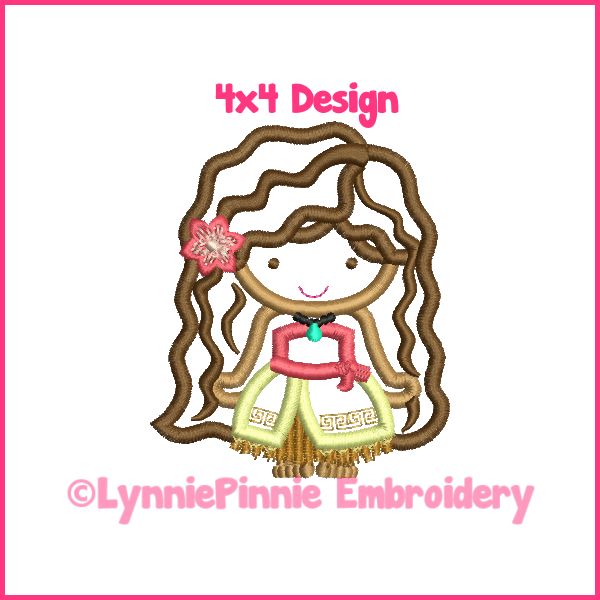 Pretty Polynesian Princess Cutie Applique Design 4x4 5x7 6x10