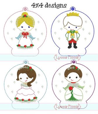 Prince & Princess Christmas Ornament Design Set 4x4 5x7 In the Hoop
