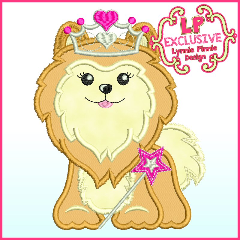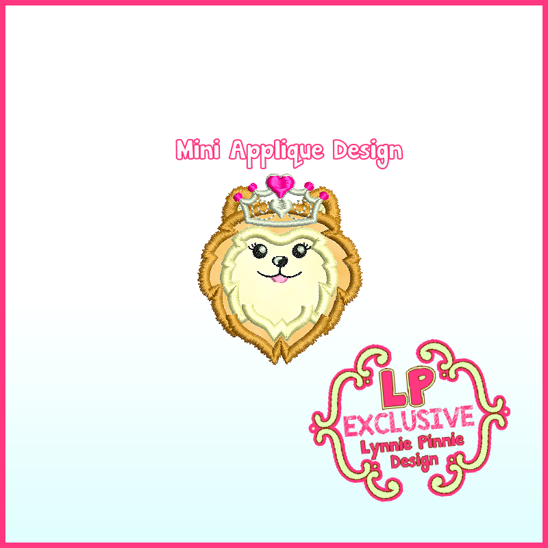 Princess Pomeranian Puppy Dog with Crown Applique Machine Embroidery Design File 4x4 5x7 6x10