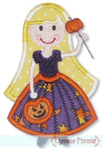 Little Princess Pumkin is all ready to collect some treats with her jack-o-lantern bucket, fancy dress, and pumkin wand.