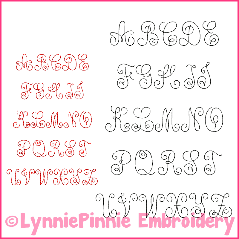 Quick Monogram Sketch Triple Run Embroidery Font -- 5 sizes + BX