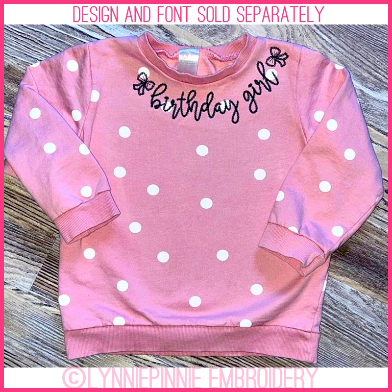 Pictured with the bow from our Chain Stitch Minis Font Add Ons