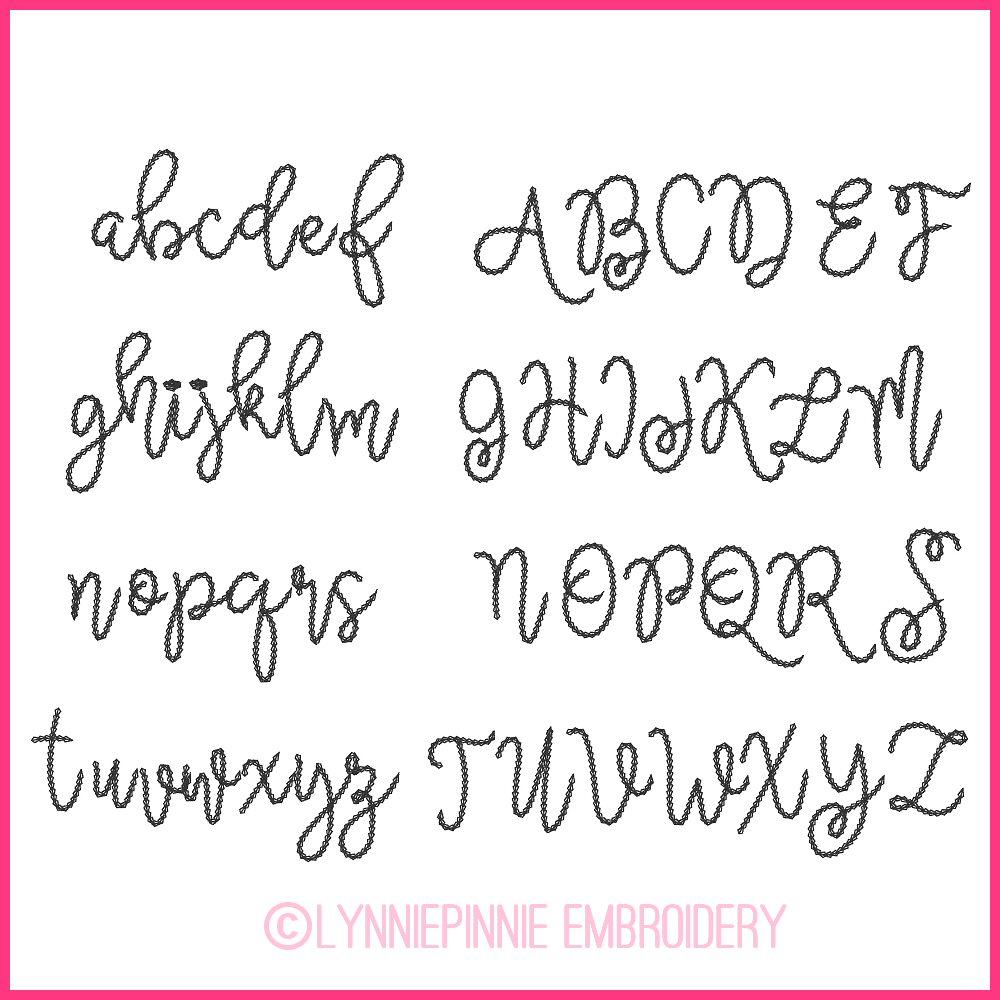 keywords: embroidery script cursive font chainstitch chain stitch pattern design designs 4x4 pes brother janome pe770 pe-770 pe500 alphabet font embrilliance bx bx format bx font persona native bx embrilliance