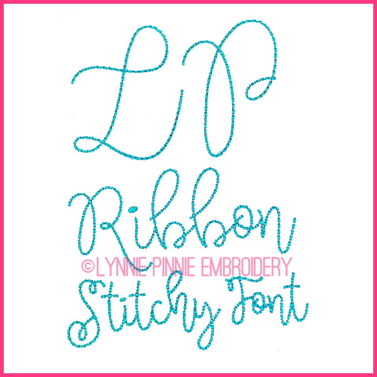Ribbon Stitchy Hand Stitch Style Font Uppercase & Lowercase Font DIGITAL Embroidery Machine File -- 5 sizes + Native BX Embroidery Font Scalable