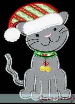 Santa Hat Kitten Applique 4x4 5x7 6x10
