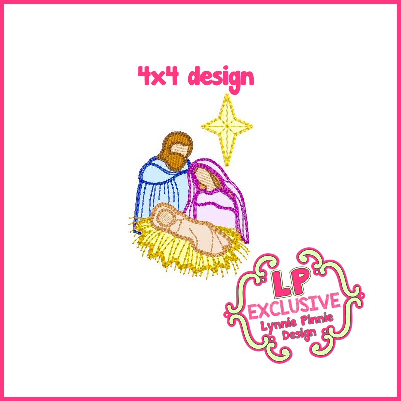 Scribble Stitch Nativity Applique Machine Embroidery Design File 4x4 5x7 6x10
