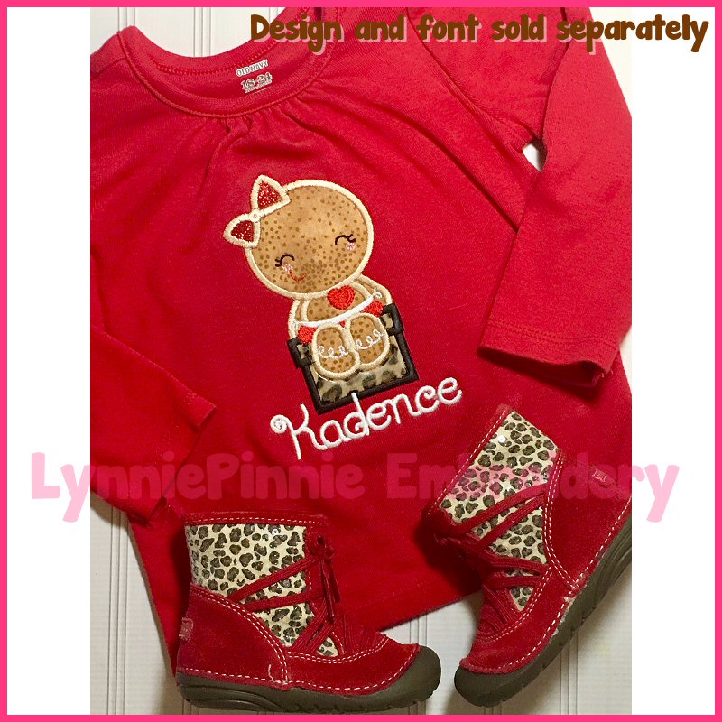 Sitting Ginger Girl Applique 4x4 5x7 6x10 Machine Embroidery Digital Design File