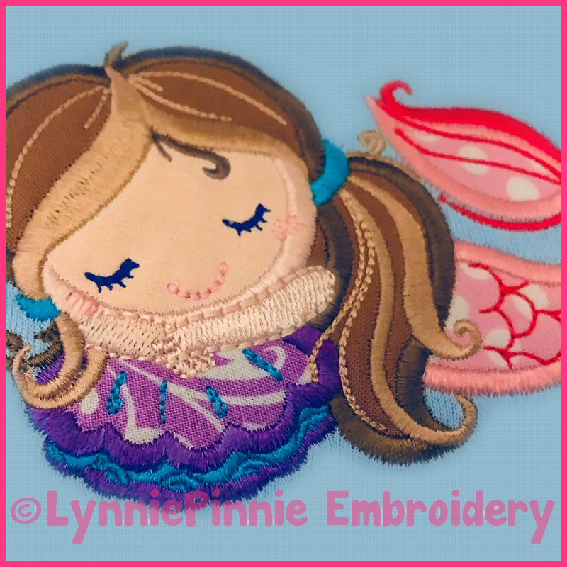 Sleepy Applique Mermaid 4x4 5x7 6x10  Machine Embroidery Digital Design File
