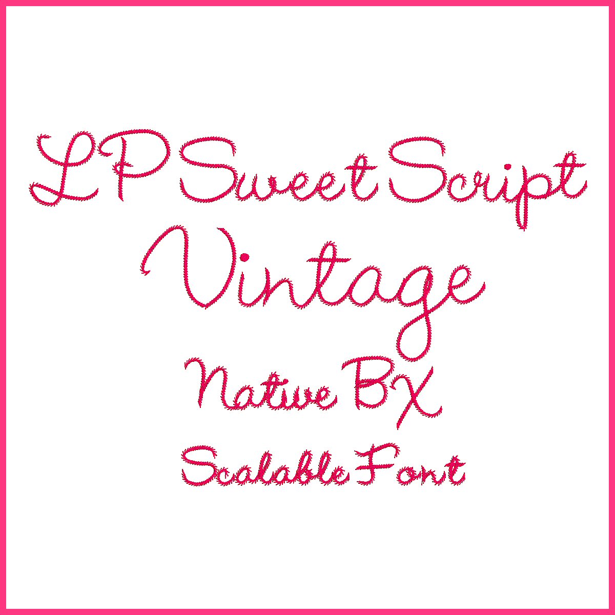 - ONE Native BX file that allows you to use this font in all possible sizes from 40mm to 150mm (approximately 1.5 inches to 6 inches) Our regular Sweet Script Vintage is a smaller size option.
