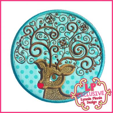 Swirly Reindeer Circle Applique 4x4 5x7 6x10 7x11 SVG