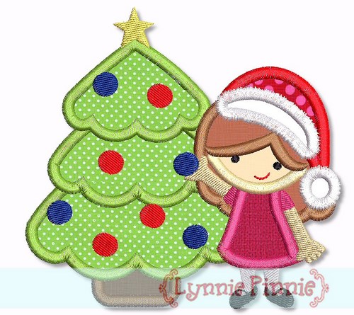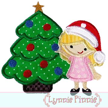 Tree Trimming Girl Applique 4x4 5x7 6x10