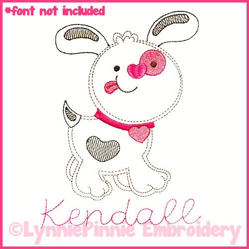 Valentine Heart Puppy Colorwork Sketch Embroidery Design 4x4 5x7 6x10