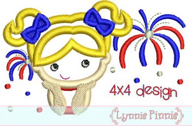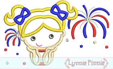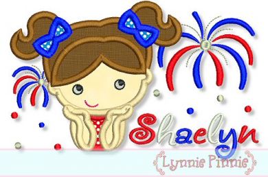 Watching Fireworks Applique - Girl 4x4 5x7 6x10