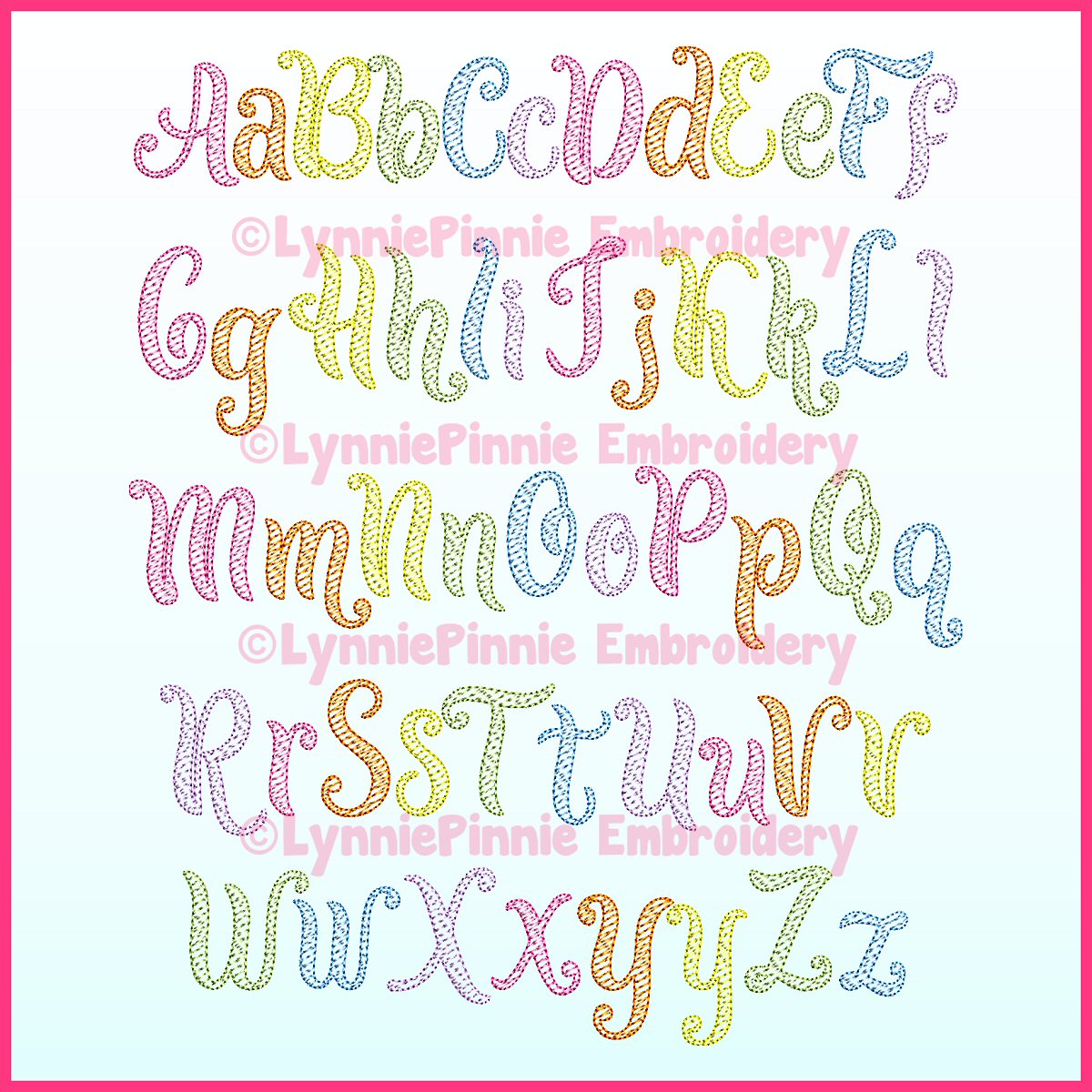 Release Date: July 2019© Lynnie Pinnie Embroiderykeywords: embroidery sketch scribble pencil crayon script fill stitch light colorwork triple bean design designs 4x4 pes brother janome pe770 pe-770 pe500 red work redwork alphabet font embrilliance cursive