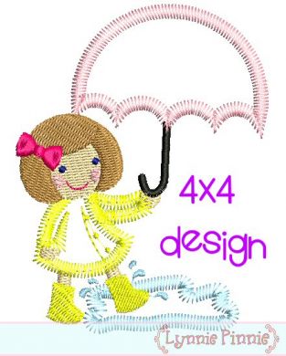 Zig Zag Umbrella Girl Applique 4x4 5x7 6x10